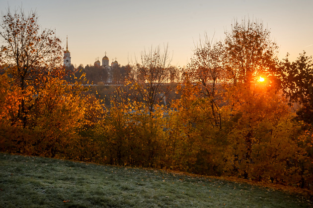 Уже несколько дней на рассвете владимирцы могут наблюдать первые осенние заморозки. Несмотря на теплые и солнечные дни, утром многие растения покрыты инеем. Мы предлагаем вам увидеть первые заморозки в пойме Клязьмы и в историческом ядре областного центра через объектив нашего корреспондента Владимира Чучадеева.