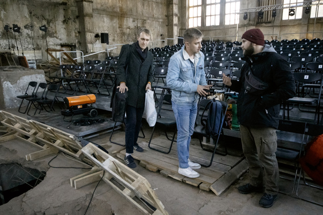Спрашиваем режиссера: «Но что с гастролями? Если спектакль стоит того, чтобы его увидели как можно больше людей, его надо показывать. А как? Допустим, заброшенные цеха можно найти в любом относительно большом городе СНГ. Но каждый раз складывать этот пазл — с арендой оборудования, его настройкой под конкретную площадку?».