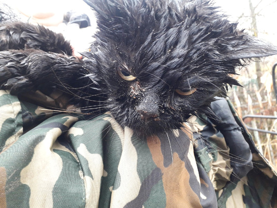 Мужчине снова помогли спуститься, а кот, мокрый, замерзший, но главное – живой и здоровый, передан на передержку местной жительнице», – рассказали участники «спецоперации».