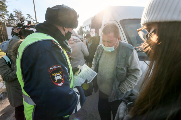 Какие маски? Пассажирам междугороднего автобуса из Судогды было не до них. Главное, чтобы вовремя довезли до нужной остановки. Проверка сотрудников ДПС у них вызывала только раздражение - пока осматривали водителя, люди громко возмущались беспричинной (на их взгляд) остановкой, и даже заблокировали входную дверь в салон. Но маски после предупреждения всё же надели. Угроза получить штраф оказалась действенной.