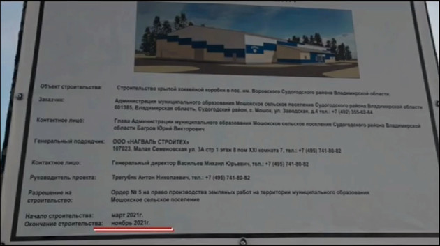 Отправили официальный запрос в администрацию Судогодского района, где подтвердился факт неисполнения обязательств подрядчиком. В частности, с ООО "НАГВАЛЬ СТРОЙТЕХ" было проведено 5 совещаний в администрации Мошокского поселения, 2 совещания в районной администрации, а также еще пять встреч было на уровне областного департамента физической культуры и спорта. Подрядчик всем пообещал увеличить интенсивность работ, но, как мы видим, этого не произошло.