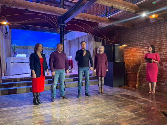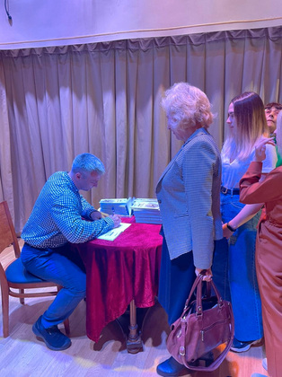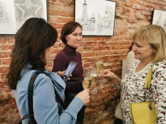 Презентация началась со встречи гостей в холле, где сотрудницами Дома Мараева была обустроена выставка рисунков, использованных в сборнике. Здесь гости могли пообщаться в непринужденной обстановке и выпить по бокалу шампанского за литературный дебют. А продолжился праздник рождения книги в театральном зале «Совенок».