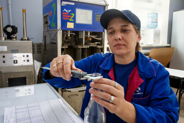 В отремонтированной и заново оборудованной лаборатории ОТК контролер Ольга Шиманова на наших глазах проверяет качество продукции. Говорит, разница огромная по сравнению с тем, что было до прихода нынешнего руководства. Зарплату выплачивают два раза в месяц: