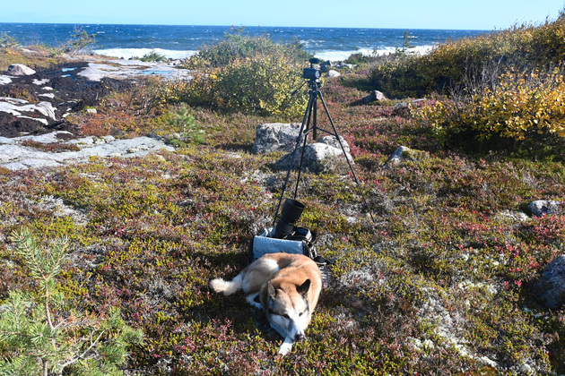 «Вставали мы там каждый день в 6-7 утра. Никогда не сидим с собакой на месте. Лагерь поставили — пошли в тайгу. Минимум 10 км в день нахаживали. Тайга у нас прекрасна. Как и море. Оно после шторма успокаивается не сразу — по трое суток примерно... Звезды там редкость во второй половине сентября. Днем солнце, даже если шторм, а к ночи набегают облака, становится очень темно».