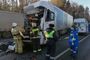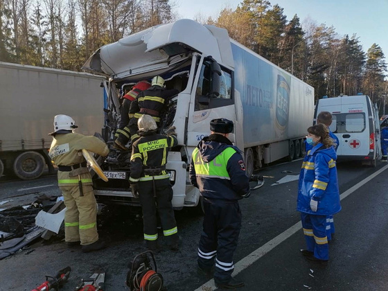 На место незамедлительно выехали подразделения МЧС, «скорая» и ГИБДД. Сотрудникам МЧС пришлось деблокировать пострадавшего – водителя одного из грузовиков.