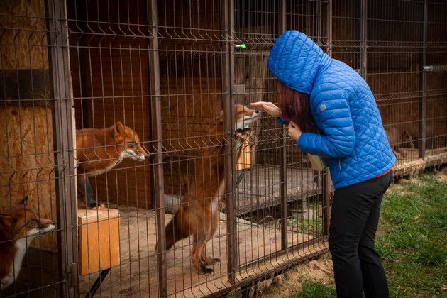 Удивительно, но некоторые из лис настолько любят внимание, что даже готовы повоевать за него. «Она их отгоняет, потому что хочет единолично с нами общаться», – с улыбкой говорит владелица питомника, показывая на двух кричащих зверьков. А одна парочка наперебой просилась «на ручки»! Между прочим, звуки, которые издают лисы, очень необычные. Им сложно дать четкое определение, как у свинок с их «хрю» или уток с их «кря». Как ни странно, лисы «говорят», как… вороны! «Кар-кар-кар», – так можно описать тявканье рыжих.