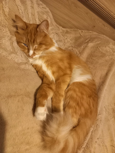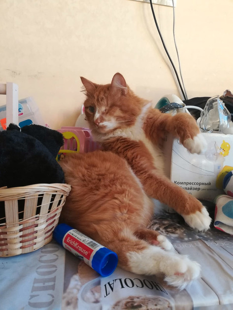 Спасла Альбуса и других его собратьев по несчастью волонтер Ирина, выхаживающая таких животных и пристраивающая их потом в добрые руки. Альбуса дважды оперировали, но, увы, даже сохранившийся усилиями врачей глазик у него почти не видит. Но! Это не мешает ему абсолютно, уверяет Мария Лебедева. Кот играет с собаками семьи, прыгает, радуется жизни, как все счастливые и любимые коты. Кстати, свой первый день дома он провел на диване - смотрел на собак, которые судорожно тыкались в него носом, и ни разу не проявил агрессии к этим любопытным надоедам. Затем за три дня Альбус освоил комнату Лены, не выходя за ее пределы, и явно наслаждался, когда люди брали его на ручки и гладили. Спустя неделю он уже изучил всю квартиру, явно решив — да, это мой дом!
