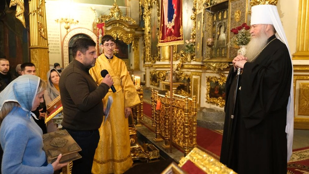 Как сообщает пресс-служба Епархии, по завершению литургии от благотворителя Александра Юсифова и его семьи было передано в дар храма старинное Евангелие. По оценкам специалистов, оно датируется началом XVII века. Как уточняет пресс-служба Епархиального ведомства, священная книга была реквизирована из кафедрального собора вместе с богослужебной утварью около ста лет назад советской властью. Тогда шел активный процесс изъятия церковных ценностей их из храмов.