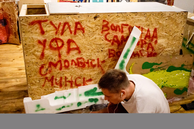На выставке во “Флигеле”, кроме популярного Бэнкси, также представлены работы художников из Санкт-Петербурга, Москвы, Уфы, Пекина, Франции, Польши. Особое место заняли работы граффитистов из Владимира.