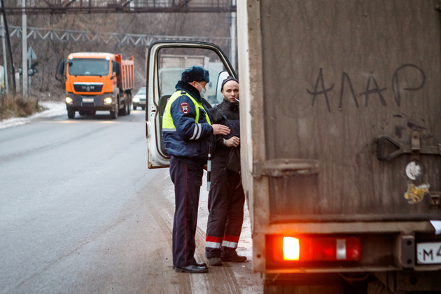 В топ-лист нарушений еще входит установка колес с разным рисунком протектора. При нас останавливают автобус. Водитель настойчиво требует его не снимать. Здесь прямо комбо: не работает тахограф и разнобойные шины: впереди – “липучка”, а на задних колесах – шипованные.