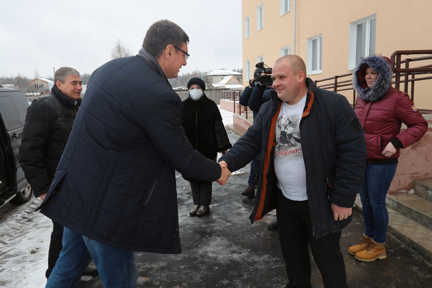 Семье Белых вручили ключи от новенькой трёхкомнатной квартиры в селе Клязьминский Городок Ковровского района. Дом, в котором семья бесплатно получила жилплощадь, построен по госпрограмме «Обеспечение доступным и комфортным жильем населения Владимирской области». До этого многодетным родителям приходилось снимать «двушку» у родственников.