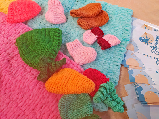 В этом году мамы - волонтеры провели две акции под названием «Торопыжки», передав подарки деткам, которые родились раньше срока. К третьей акции, запланированной на декабрь, они вновь набивают сундучки «приданым» для новорожденных. Всего за год рукодельницы навязали и сшили 240 нужных изделий.