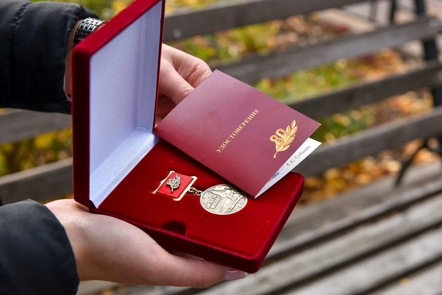 Также юбилейным нагрудном знаком удостоили Екатерину Михайловну Борисову. В начале войны она получила аттестат об окончании медицинского училища. Юную Катю направили на медицинское обслуживание студентов, копающих оборонительные рвы. Потом девушку перевели старшей медсестрой в госпиталь им. Н.Э. Баумана, который с декабря 1941 года начал принимать раненых.