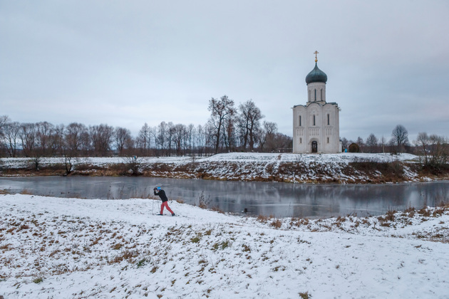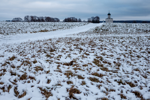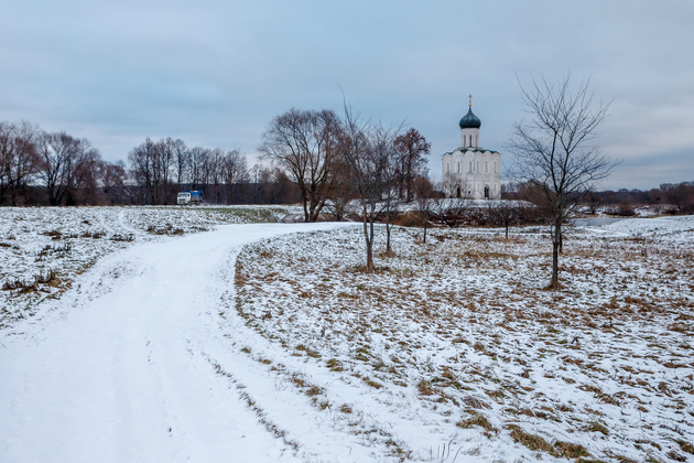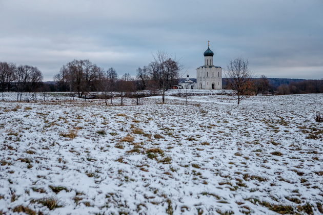 Один из самых красивых храмов Владимирской области и зимой, и летом, не только "одним цветом", но и один из самых притягательных объектов для фотографов и туристов. Нерль вокруг церкви уже покрывается тонким льдом. Фоторепортаж с Боголюбовского луга нашего фотокорреспондента Владимира Чучадеева.