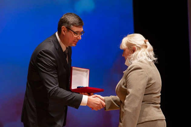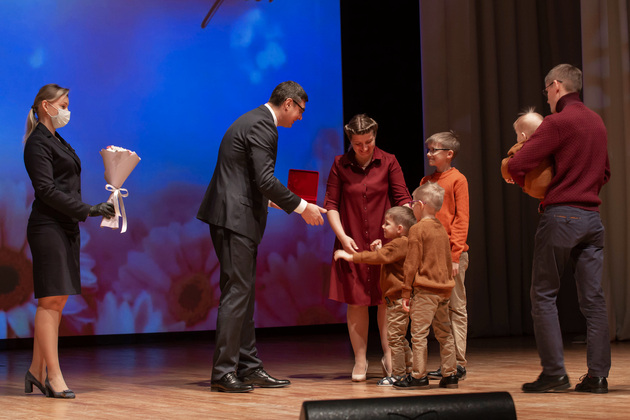 Александр Авдеев вручил почетный знак «Родительская слава Земли Владимирской» девяти многодетным семьям. Это Наталья и Михаил Алексеевы из г. Кольчугино (5 детей), Наталья и Владимир Большаковы из Вязниковского района (6 детей), Оксана и Дмитрий Евдокимовы из Владимира (10 детей), Ирина и Василий Летягины из с. Черкутино Собинского района (6 детей), Валентина и Денис Минеевы из г. Радужный (пятеро сыновей), Анна и Максим Строкины из с. Новое Суздальского района (5 детей), Михаил и Екатерина Терентьевы из о. Муром (6 детей), Мария и Сергей Шпилевич из Владимира (6 детей), Наталья и Сергей Сметанины из г. Петушки (5 детей).