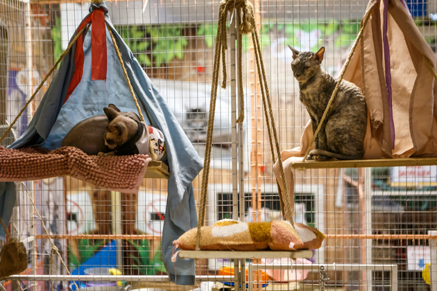 Появились и новшества. Теперь кошачьи вольеры оборудованы отдельными зонами отдыха, в которые кошки могут уйти в любое время. Как гласят надписи на этих загончиках, кормить и гладить кошек в этих зонах нельзя. С этим пунктом ФЗ у «Федерации» проблем нет. Получается, что формально выставка кошек не является контактным зоопарком, даже несмотря на то, что основная цель посещения - погладить и покормить животных.