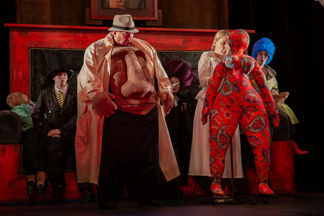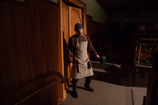 Актриса Мария Коваленко играет невесту Агафью Тихоновну Купердягину, точнее одну из ее ипостасей – ее внутренний мир. Главных героев играют одновременно и актеры, и куклы.