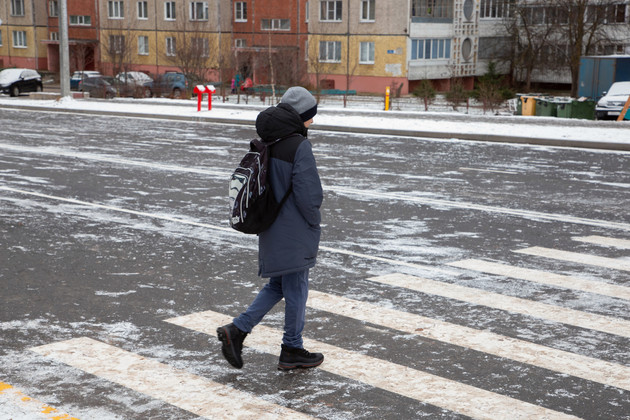 Вся дорога и пешеходные дорожки были покрыты толстой коркой льда. Справляться с ним дорожники решили классическим способом – просто присыпали развязку песком. За исключением пешеходных зон. Видимо, на них песка уже не хватило. Так наша прогулка вдоль дороги превратилась в катание на импровизированном катке, которое вполне могло закончиться в больнице.