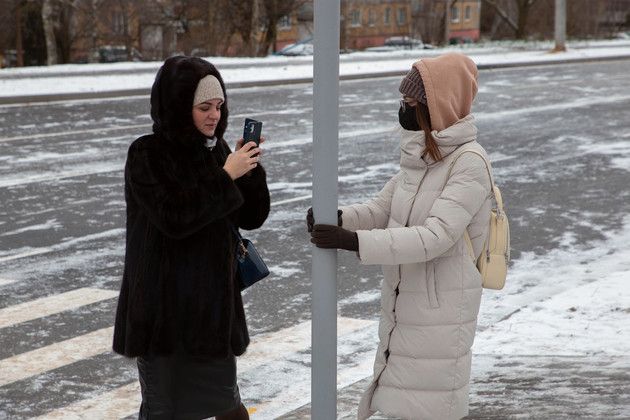 Экскурсию по новой развязке мне провели жительницы ближайших к проезду домов, и по совместительству, фотограф и дизайнер «ВВ» - Наталья Ларина и Валентина Черкасова. Первое, на что мы вместе обратили внимание – обледенелые тротуары.