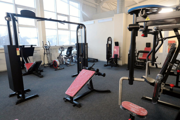 Здание ФОКа включает в себя буфет, небольшой спортивный зал и зал с чашей бассейна. При этом проект нельзя назвать типовым - бассейн тут находится на втором этаже.