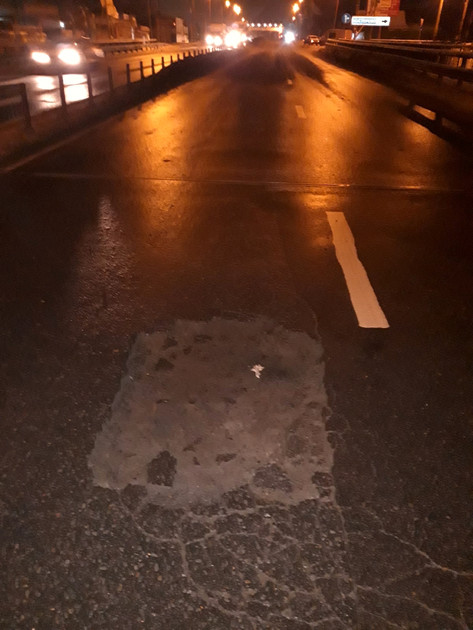 “В выходные сразу среагировали и заделали яму времянкой. Но так как вчера был снегопад, все повыбивало. Как раз сейчас дефект устраняют, сделают более надежно”, – уверяет пресс-секретарь Упрдора Александр Полянских.