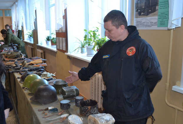 Подчеркивая преемственность в защите Родины, военно-исторический клуб «222-й стрелковый полк» представил выставку фронтового оружия и амуниции, найденных поисковиками на местах боев.