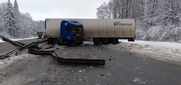По предварительным данным, столкнулись легковой и грузовой автомобили. Грузовой автомобиль «Скания» напоролся на барьерное ограждение, опрокинулся и перегородил обе полосы движения в сторону областного центра.