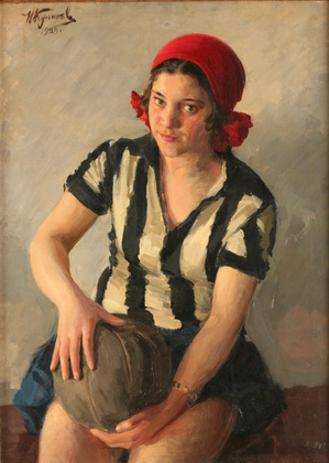 И Куликов дал! В конце 20-х годов появился его «комсомольский» цикл. «Физкультурница» Куликова, на мой взгляд, вполне конкуретоспособна с более раскрученной «Девушкой в футболке» Дейнеки. А еще Куликов написал «Пионеров» и многофигурную композицию «Международный юношеский день», где колонна юношей и девушек марширует в военной форме. Особенно известна его картина той поры «Юнгштурм» - задорная девушка в гимнастерке и кепке под развивающимся знаменем. Этот портрет с признаками плаката посвящен молодежному коммунистическому движению в Германии. Но моделью, оказывается, послужила наша комсомолка Людмила Шеронова. И в образе бойца «Юнгштурма» с картины Куликова в качестве плаката и на открытках разошлась по всей стране.