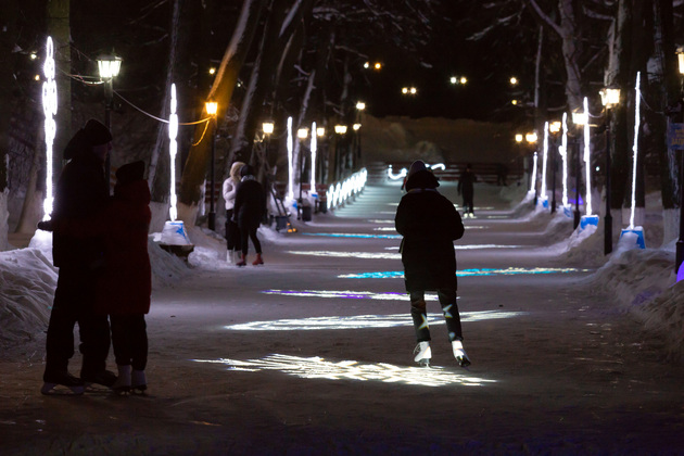 Ковровчане фотографируются со светящимися «Новогодними пингвинами» на территории «Кукушкиного пруда», который был благоустроен в этом году в рамках нацпроекта «Жильё и городская среда».