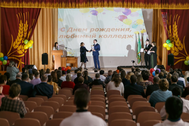 Празднование юбилея, поздравить с которым студентов и преподавателей приехали руководители ведущих аграрных предприятий региона, продолжилось в актовом зале колледжа награждением сотрудников учебного учреждения почетными грамотами и благодарственными письмами от Министерства просвещения, Министерства сельского хозяйства, администрации и Законодательного Собрания Владимирской области, департамента сельского хозяйства.