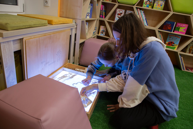 Модельная библиотека в Камешкове для региона – уже двенадцатая по счету. На капитальный ремонт было направлено около 6,9 млн рублей, в том числе 5 млн рублей – из федерального бюджета. За счет этих средств кардинально преобразились входная группа, абонемент и читальный зал, а также игровые комнаты. Шарма добавляет нестандартная мебель.