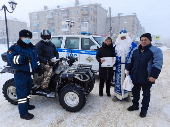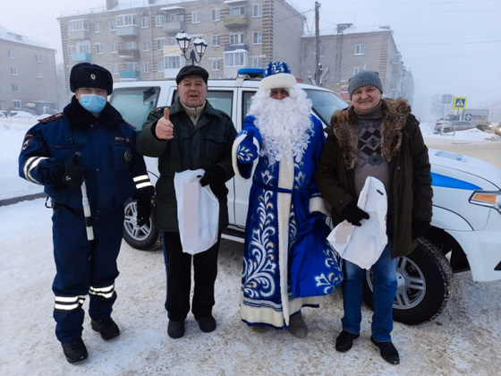 Участникам дорожного движения Дедушка Мороз вновь напомнил о необходимости соблюдения ПДД, а детишкам и их мамам подарил светоотражатели.