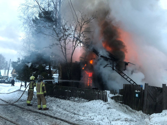 Огнеборцы выдвинулись к дому № 12 по улице Маяковского. К моменту их прибытия крыша строения полыхала по всей площади.
