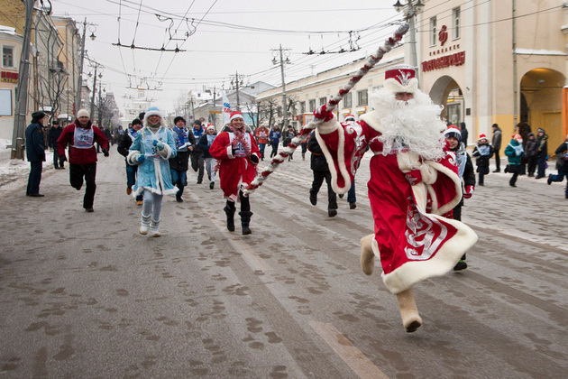 Перекрытие центра на пару часов сделано в целях обеспечения безопасности дорожного движения во время проведения XI забега Дедов Морозов и Снегурочек. Как мы сообщали ранее, участников разного возраста и даже с домашними животными ждет разминка и регистрация на Театральной площади. А в 12 часов старт у Золотых ворот. Финишируют участники забега на Соборной площади.