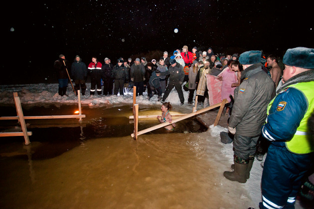 Правильно оборудованная купель должна иметь сходни и перила, а сама прорубь должна быть оснащена сеткой или обрешеткой, чтобы людей не затащило под лед. Все это загодя проверили сотрудники МЧС, которые обследовали перед праздником все организованные купели. Только в них и призывают окунаться или купаться специалисты.