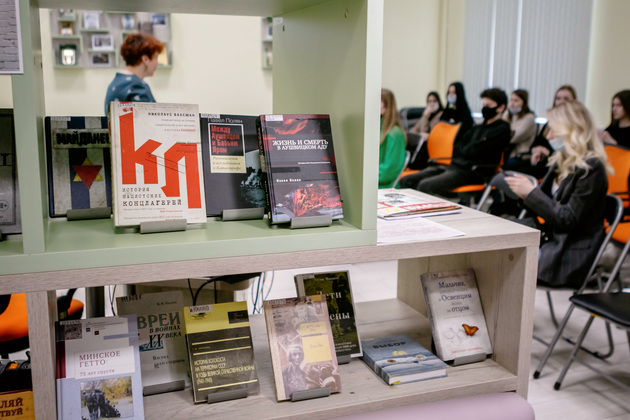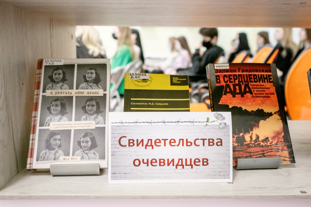 – Если говорить про документальные книги, то рекомендую прочитать «Холокост: Новая история» Риса Лоуренса. Там рассмотрена предыстория Холокоста начиная с ХХ века, описываются обстановка в немецком обществе еще до того, как Гитлер пришел к власти, – описывает экспозицию выставки Анастасия Кудасова. – Еще одна книга к прочтению – история минского гетто. Автор написал ее на основе как материальных исследований, так и свидетельств из жизни гетто. Что касается художественной литературы, то у нас представлено два произведения. Первое – «Выбор». История о людях, которые сталкиваются с последствиями Холокоста. Это своего рода мемуарные воспоминания Эдит Эгер о том, как она пережила заключение в концлагере и о ее дальнейшей жизни. Во второй книге заложена история отца и сына, которые тоже прошли через концлагерь. Возможно, именно с этих книг стоит начать ознакомление с темой, а потом перейти к изучению документов.