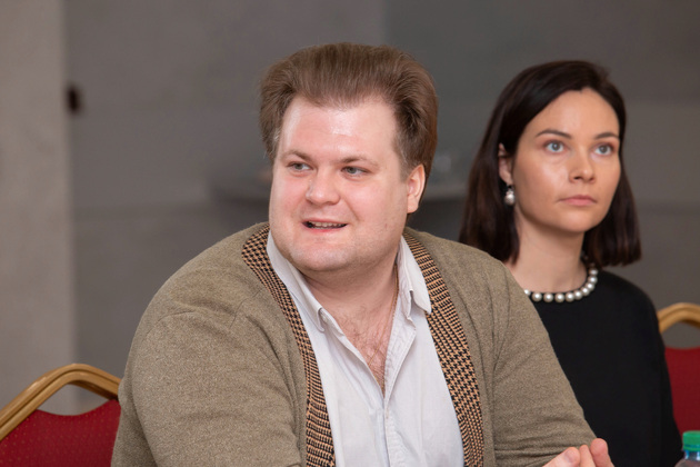 И в подтверждение своих слов Игорь Барбаков прямо на круглом столе а-капелла исполнил фрагменты одной из арий и дуэта вместе с коллегой Анастасией Симанской (сопрано).