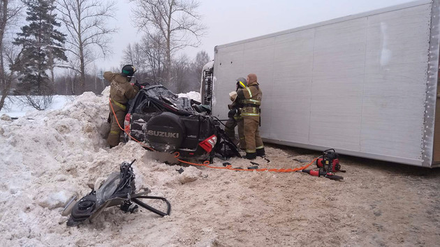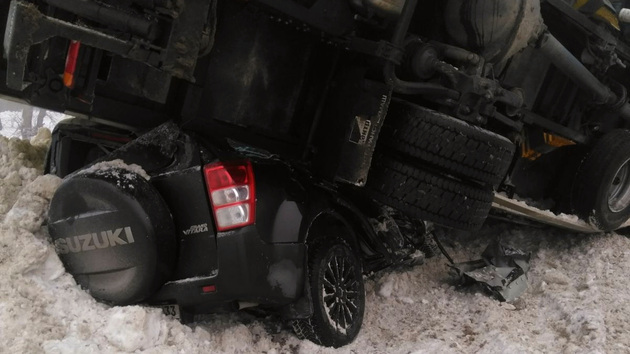 Утром 23 января на трассе Р-132 «Золотое кольцо» в Гусь-Хрустальном районе Владимирской области произошло столкновение кроссовера "Сузуки" с грузовиком "Вольво". В результате ДТП грузовик перевернулся на бок и раздавил рамно-интегрированный кузов внедорожника.