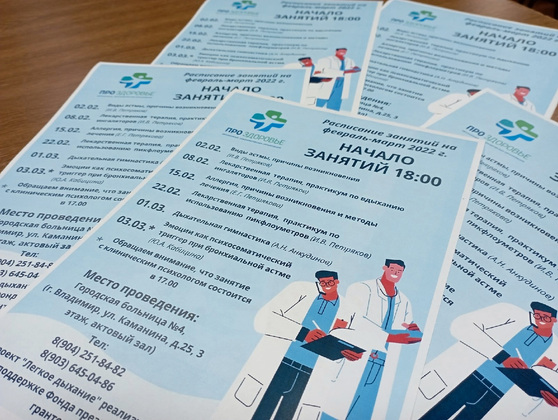 Расписание занятий «Школы пациента с бронхиальной астмой» можно найти в социальных сетях проекта, в частности, в группе во «ВКонтакте» https://vk.com/prozdorovie33.