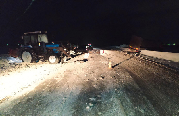 В Муромском районе 31 января около 4 часов ночи “ВАЗ” въехал в движущийся в попутном направлании трактор, который вылетел на встречную полосу и столкнулся с КАМАЗом. В результате ДТП водитель автомобиля «ВАЗ» и водитель трактора «МТЗ-82» направлены на амбулаторное лечение.