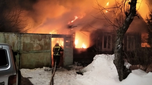 В 23-44 10 февраля в Главное управление МЧС России по Владимирской области поступило сообщение о пожаре в частном жилом доме на улице Набережной в Юрьев-Польском. На момент прибытия пожарно-спасательных подразделений наблюдалось уже открытое горение дома по всей площади.