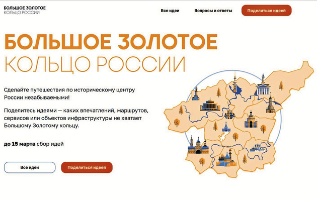 Предложения могут, например, касаться гостиничной инфраструктуры, кемпингов, объектов показа и посещений, туристических сервисов, новых тематических мероприятий и других полезных решений. Идеи будут использованы при планировании развития туризма на территории «Большого Золотого кольца».