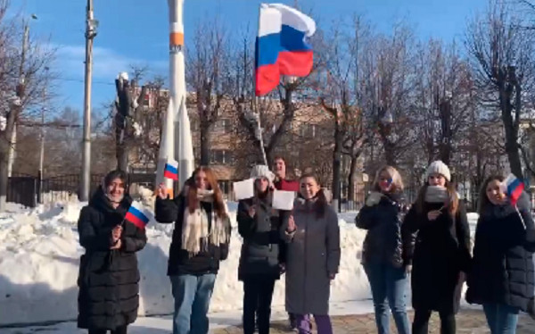 Студенты владимирского филиала РАНХиГС в поддержку фигуристки вышли на улицу с российскими флагами и портретами Камилы Валиевой, скандируя «Камила, мы с тобой!» и «Болеем за наших!».
