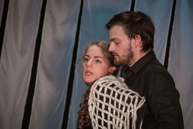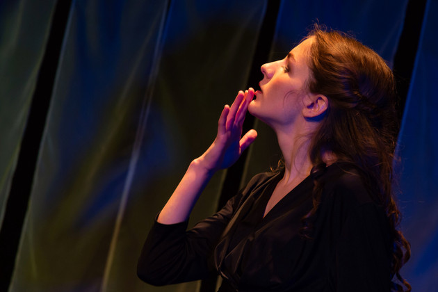 Артисты мгновенно перестраивают декорации из чемоданов (жизнь Ахматовой прошла в путешествиях) или черных академических досок... Преобразуют они и сами себя с помощью перемен в костюмах и знаковых предметов - вроде шпаги в руках Гумилева или белой шали на плечах Ахматовой.