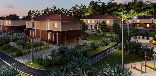Вся территория посёлка также благоустроена: вас ждут заасфальтированные дороги, освещенные улицы, общественная детская площадка и гостевые парковки.
