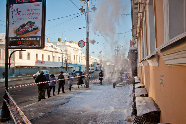 По словам главного государственного жилищного инспектора Владимирской области Елены Андреевой, количество обращений на неочищенные кровли и не сбитые вовремя сосульки этой зимой выросло в три раза: с 1 декабря по 17 февраля в областную жилищную инспекцию поступило более 700 жалоб такого рода. 200 — из Владимира, больше 60-ти - из Александрова, столько же из Киржача, полсотни — из Коврова и Гусь-Хрустального.