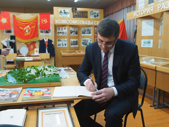 Перед встречей, Александр Авдеев посетил Новосельскую среднюю общеобразовательную школу имени В. П. Пантыкина. Глава региона не только осмотрел классы и пообщался с учениками, но и побывал на экскурсии в школьном патриотическом музее.