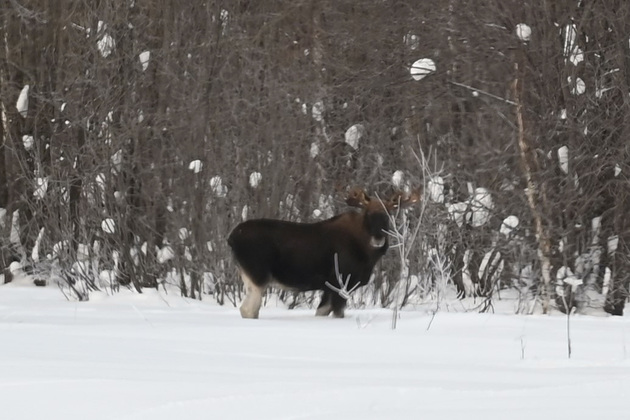 По наводке местного охотоведа и друга Евгения Прытова владимирец каждый день объезжал охотничьи угодья, поражаясь количеству разнообразного зверья: животные, конечно, ввиду природной осторожности не выскакивали под лыжи снегохода, но свежие следы — куниц, зайцев, копытных, птиц (любителей прятаться в сугробах) были повсюду. Однажды во время остановки Сергей Николаевич на кромке леса увидел корову — самку лося, которая в ответ глазела на него совершенно без опаски, «будто ни разу человека не видела». А потом из-за деревьев вышел бык — самец лося.
