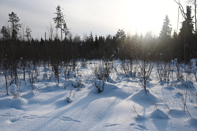 «Здоровый, красавец. В наших местах таких, к сожалению, нет — не успевают вырасти, - говорит Сергей Евченко. - А этого я когда увидел — чуть со снегохода не упал. Но вышло комично: когда он меня увидел, то решил спрятаться — за хилый кустик, способный разве что его нос прикрыть. Так и стоял — периодически выглядывал и снова «прятался».