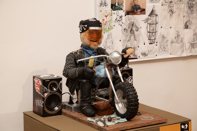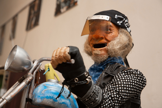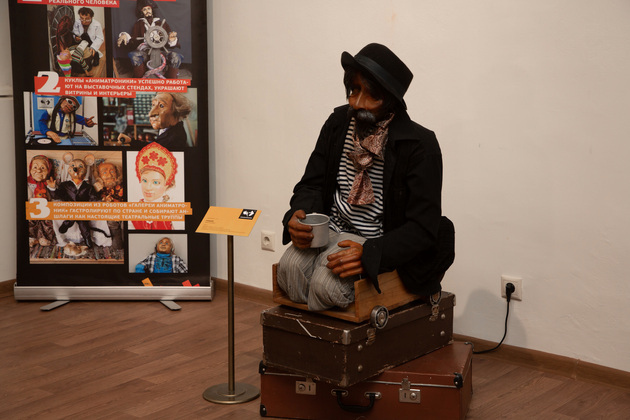 “Некоторые куклы появляются совершенно случайно. Например, байкер появился из старого фотоаппарата мыльницы. У него очень ярко светила вспышка, а выкидывать было жалко. Стали думать, что мы можем сделать вокруг этой вспышки. Сначала хотели сделать сталевара, но потом вдруг стал вырисовываться байкер. А бывает идеи приходят от клиентов. Допустим, лось. Заказчик продавал дикоросы в Китай - ягоды и орехи. Нужен был своеобразный механический представитель, который бы сидел на выставке и очень внятно представлял продукт. Мы решили, что это должен быть лесной зверь. И всё, лось едет в Китай и на китайском языке рассказывает, какие хорошие у нас ягоды”, — поделился с нами секретом фирмы Павел.